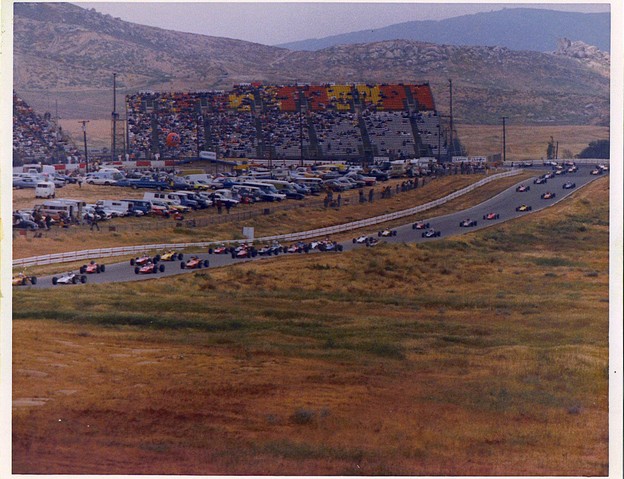In the fall of 1964 my friend (Dave Smith HHS 63) and I started the Southwestern College Sports Car Club. I entered many Autocross and Slalom events in the little Blue Sprite I drove to school in my Jr. year at Hilltop. That led to a start in sports car races at Riverside Raceway and other courses throughout the southwest. When I returned from the Army I joined with Chassis Engineering Co. (National City) to build and develop a successful line of small sports racing cars (the 2-seater car in the pictures). In 1972 I started racing single seat Formula cars. I opened a dealership in Riverside for the British made "Merlyn" Formula Ford race cars. This class was very popular and we saw starting fields that exceeded 50 cars. There is a picture of a "pace lap" taken at Riverside with a full field of cars. (luckily I qualified well and am the 3rd car at the front of the field). In 1974 I raced in the USAC/SCCA F-5000 series. This was a North American road racing series that grouped USAC (Indy) cars with the SCCA F5000 cars. These cars were equal to the Formula 1 cars at the time and many international drivers took part (Mario Andretti, James Hunt, Bobby Unser, etc.) as these cars were also raced in Europe, Australia and New Zealand. It was a great experience to meet and race against so many drivers I had admired during my racing years.